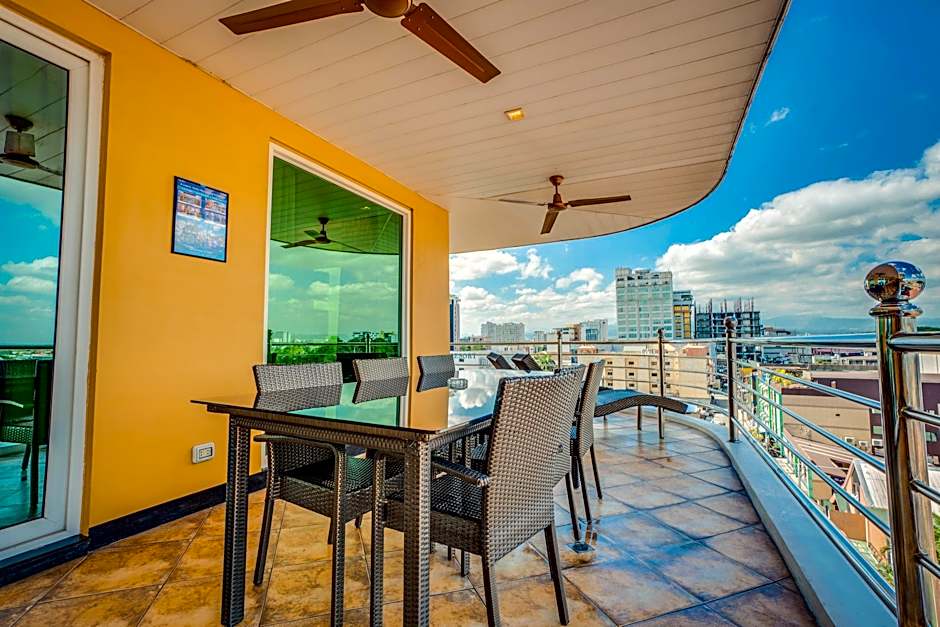 Facing the East, this fully furnished 2-bedroom apartment has a kitchen and a separate living room with a flat-screen TV and DVD player. Meals can be enjoyed at the dining area or outdoors in the balcony. Bathrooms have hot-water showers.
